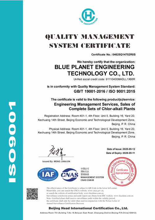 Somos a BPC (BLUE PLANET ENGINEERING TECHNOLOGY CO., LTD), uma empresa global de engenharia que integra engenharia, tecnologia, serviços e comércio internacional. Nós nos concentramos em fornecer soluções integradas para plantas de cloro e álcalis, tecnologias de suporte upstream e downstream, bem como contratação geral de EPC. Somos líderes da China em negócios de marketing e vendas no exterior, bem como uma plataforma para fornecer tecnologia e serviços para clientes globais de cloro-álcalis.